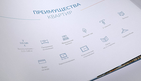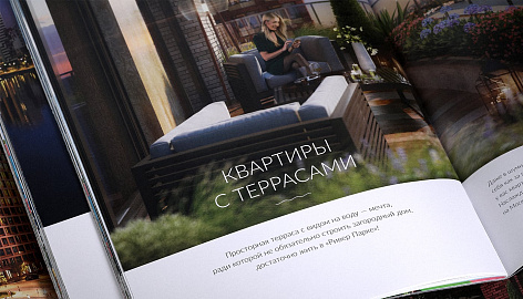 Специально для проекта была проведена фотосъемка с участием актеров. Полученный контент дополнил архитектурные визуализации и позволил сделать впечатляющий буклет, создающий яркие позитивные эмоции.