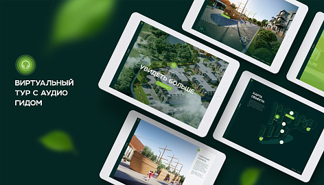Задачу погружения пользователя в мир Veren Village Стрельна решает также виртуальная экскурсия. Для большей эмоции в ней использованы фоновые звуки: пение птиц, шелест листвы от внезапного порыва ветра и мягкий плеск воды. Для удобства восприятия каждую локацию озвучивает диктор — заслуженный артист России Владимир Ерёмин. Детальные преимущества проекта подчеркиваются через интерактивные элементы.