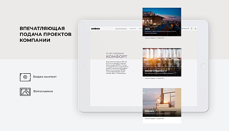 • впечатляющая подача портфолио жилых и коммерческих объектов;