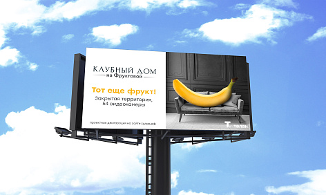 Сочная рекламная кампания жилого комплекса «Клубный дом на Фруктовой» была запущена в конце мая 2019 года. Ижевску не хватало ярких акцентов и красок жизни, и мы это исправили! Образ аппетитных фруктов – не только креатив, но и способ увеличить запоминаемость названия улицы «Фруктовой», а также всего проекта. Главный посыл – сделать жилой комплекс отличающимся от других, более сочным, свежим и интересным. Это тот ещё фрукт!