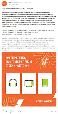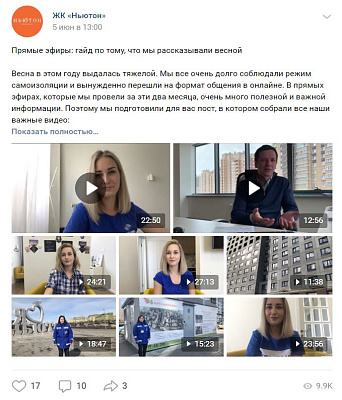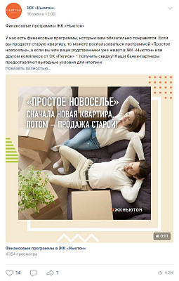 В социальных сетях мы просто, честно и понятно рассказываем о том, почему стоит жить в ЖК «Ньютон». Отвечаем на вопросы, проводим прямые эфиры, подробно описываем все возможности, которые получат новые жильцы. Именно с помощью социальных сетей мы доносим до потенциальных жильцов максимум полезной и интересной информации.