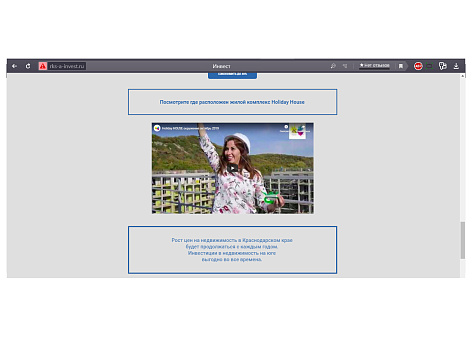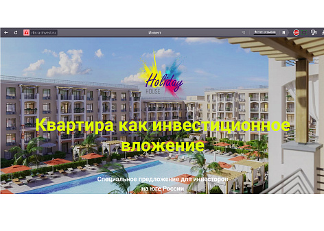 Именно поэтому мы сделали отдельный сайт, рассказывающий, как можно заработать на покупке недвижимости в ЖК Holiday HOUSE расположенном в 12км от города Анапа в месте где сочетаются можжевеловые рощи и свежий морской бриз. Holiday HOUSE это жилой комплекс класса комфорт плюс, где абсолютно все квартиры сдаются с готовым ремонтом.