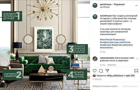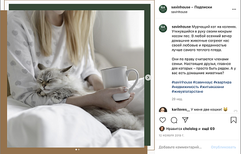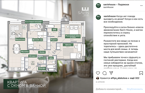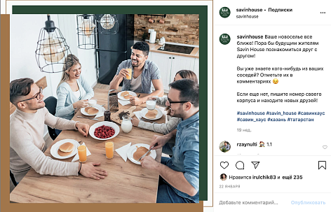 Маркетинг в соцсетях ЖК Savin House реализуется в двух сообществах − ВКонтакте, Instagram. Уникальностью стратегии является вовлеченность, так как выстраивается открытая коммуникацию с аудиторией. Мы доносим ключевые преимущества жилого комплекса, создаем прочное и дружественное комьюнити будущих жильцов и даем больше, чем может дать сообщество в социальных сетях.