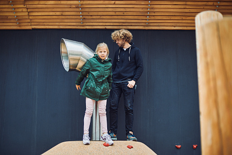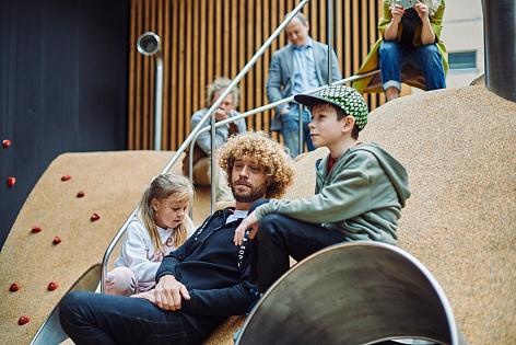 Илья Варламов вместе с дочерью Леной провел тест-драйв детской площадки во дворе дома «Малая Ордынка, 19». Они два часа играли в «дюнах» с перископами, норами и слуховой трубой, катались на качелях и рисовали на грифельной доске.