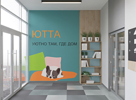 Уют малых пространств стал основной идеей, которая была поддержана и раскрыта как в названии «Ютта», так и в визуальном стиле. Мягкие цвета, плавные линии и такие добрые иллюстрации с домашними животными позволили легко передать настроение жилого комплекса. Аудит коммуникаций конкурентов и понимание аудитории натолкнули на необычное визуальное решение и почти полный отказ от реалистичных изображений. В основу сюжетов легли бытовые ситуации, которые близки покупателю и не «продают» очередной ЖК в лоб. Такой подход заметно выделяет «Ютту» на коммуникационном ландшафте. Это было отмечено даже весьма искушенным риэлторским сообществом, что благотворно сказалось на продажах объекта.
