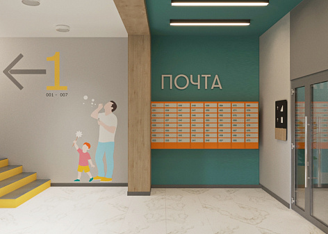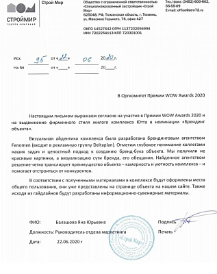 В данный момент объект находится в стадии строительства. Фирменный стиль уже используется на сайте компании, в оформлении буклетов и полиграфии, для оформления мест общего пользования (согласованы эскизы МОП).