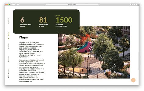 Сайт подчёркивает симбиоз жизни в городе и на природе. Дизайн, интерфейс взаимодействия, программная часть, всё это работает на поддержание лёгкости и необычности сайта.