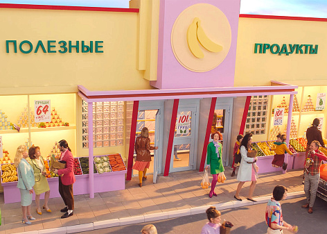 Ролик "Живые квартиры с магазинами полезных продуктов у дома"