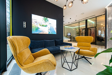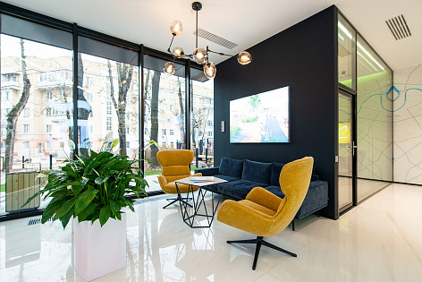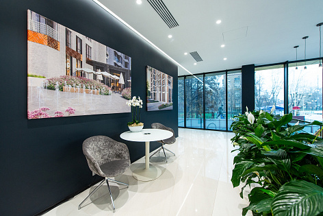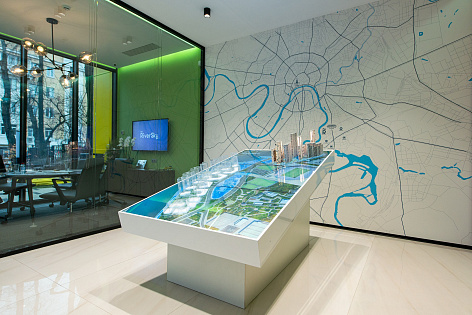 Офис продаж жилого квартала RiverSky полностью соответствует премиальному уровню представляемого проекта, в его отделке использовались исключительно материалы и мебель премиум-класса.