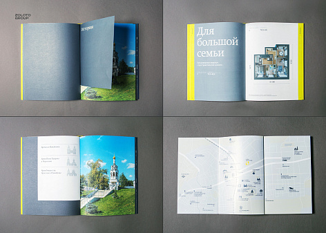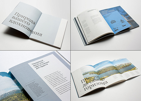 Как правило, когда человек ищет жилье, он рассматривает несколько вариантов и собирает рекламные материалы о проектах, которые потом стопкой накапливаются дома или лежат на заднем сиденье автомобиля. Поэтому при создании буклета команды решили максимально уйти от классического буклетного формата и сместить акценты с описания самого комплекса на преимущества района.