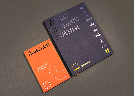 Благодаря совместной работе с клиентом дизайнеры решили использовать необычный форм-фактор. Буклет представляет собой две части: путеводитель по району, который достаточно компактен, чтобы носить его с собой, и «Атлас лучшей жизни», который презентует новый апарт-комплекс со всеми его преимуществами. Таким образом, максимально погружаясь в историю и географию района с его бульварами, скверами, музеями и магазинами, человеку проще влюбиться в локацию и начать гордиться новым домом. Так появились «Атласы» для комплексов Level Стрешнево, Level Донской, Level Амурская и в паре к ним путеводители. Идея и принцип оформления, которые легли в основу буклетов, стали главными в дизайне POS-материалов других проектов застройщика.