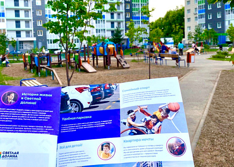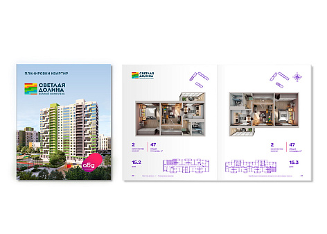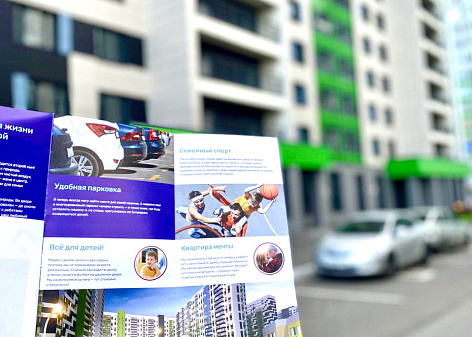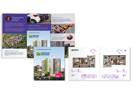Клиент получает буклет вместе с каталогом планировочных решений, который вложен внутрь каждого буклета.