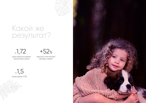Рост времени просмотра сайта в 1,75 раз, целевых заявок на 52%, а CTR в 1,5 раза относительно среднерыночных показателей.