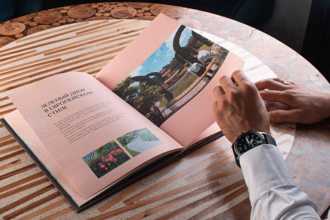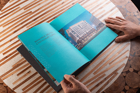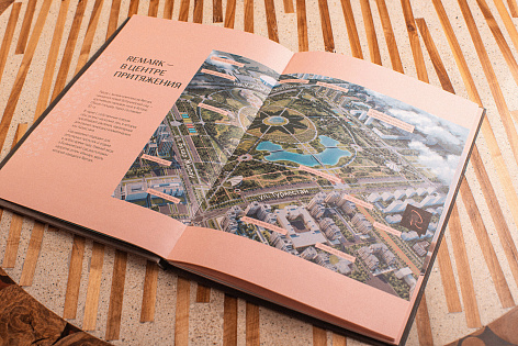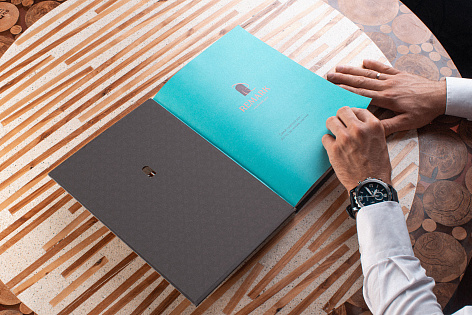 Буклет жилого комплекса подробно описывает преимущества жизни в центре города. Особенный акцент сделан на близости к Ботаническому саду и арке. Буклет последовательно и подробно рассказывает о всех существенных атрибутах комплекса, а также описывает образ жизни. В буклете используются панорамные фотографии, снятые с уровня верхних этажей жилого комплекса. Специально для буклета агентством нарисованы изображения основных объектов инфраструктуры, BI Group сняты фотографии в локации с моделями. Логотип на обложке выполнен с использованием тиснения с фольгированием. Исполнение обложки буклета разработано BI Group, дизайн-проект подготовлен агентством. Специальным решением буклета является суперобложка с вырубкой и рельефным логотипом. Отдельный вкладыш с описанием конструктивных решений выполнен с использованием цветного тиснения. Вкладыш и буклет размещаются специальном в дизайнерском чехле.