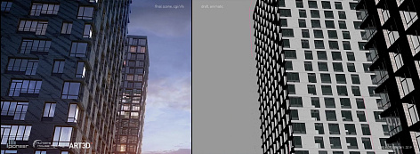 Чтобы достичь кинематографического эффекта компьютерной графики ART3D максимально детализировала 3D-модель жилого комплекса под необходимые сцены. Большая работа была проведена во время пост-продакшена и монтажа фильма, благодаря чему разница между 3D-сценами и комбинированными натурными съемками практически не заметна.