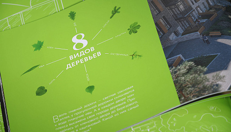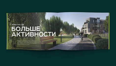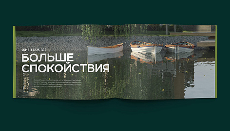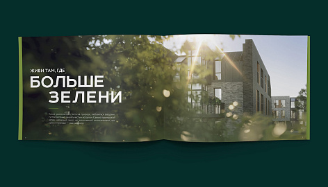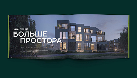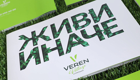 Чтобы передать уникальность проекта, было создано более двадцати иммерсивных архитектурных визуализаций и авторская графика. Брошюра раскрывает ключевую концепцию коммуникации "Живи иначе", эмоционально описывая преимущества жизни в VEREN VILLAGE стрельна "Живи там, где больше зелени, спокойствия, красоты, простора...".