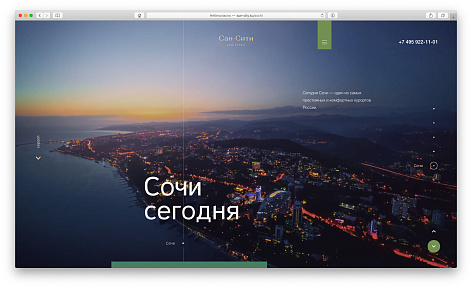 Для создания сайта были проведены натурные съемки – как самого проекта с квадрокоптера, так и самых красивых мест в Сочи: Олимпийский парк, море, горы, центр Сочи, набережные и бухты. Не обошлось и без 3D — высококачественная 3D-модель комплекса была необходима для дальнейшей интеграции с видеосъемками и создания видеоконтента кинематографического качества для использования на сайте.