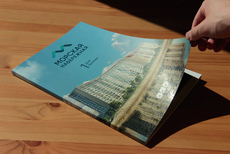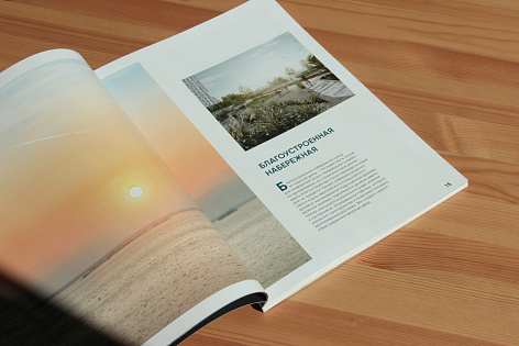 лак на передней и задней обложке создаёт эффект бликов ряби на воде и блеск фасада.