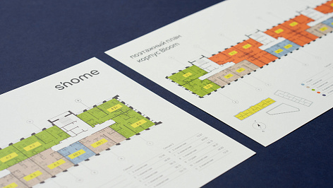 Команды SmartHeart & Shome перепридумали классический формат буклета — здесь он собирается из отдельных карточек, в зависимости от того, что именно интересует человека в проекте. Карточки делятся на разделы: расположение, архитектура, благоустройство, планировки и др.