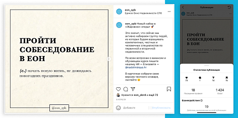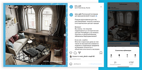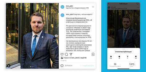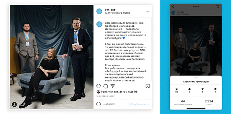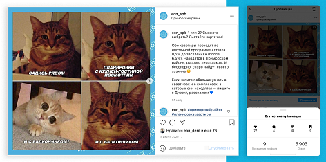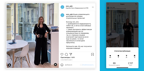 В социальной сети мы сделали основной упор на трансляцию ценностей компании — это открытость и честность. Дали компании лицо — у компании есть амбассадор Надежда Альтенгоф. В роли рядового жителя города, она рассказывает в stories компании о новостях рынка, делится впечатлениями о жилых комплексах, обращается за экспертным мнением