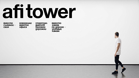 "Инаковость" аудитории становится лейтмотивом в айдентике. Название и дескриптор «AFI Tower: первый коливинг небоскреб в Москве» эффективно работают на повышение узнаваемости бренда девелопера, а слоган "Время жить по-другому" в полной мере отражает новизну концепции проекта и его основную идею - смелость быть другими.