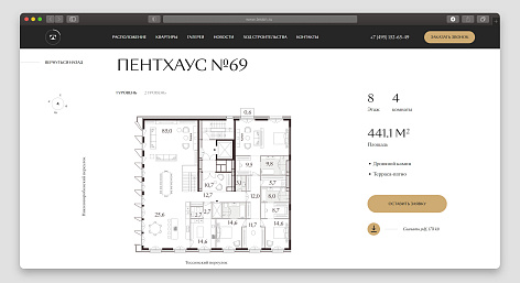 GREENCOW: мы сделали классический лендинг: разместили всю необходимую информацию о проекте и окружении на главной странице, собрали простой и удобный раздел «Выбор квартир», а также дополнительные второстепенные страницы для требовательных клиентов. При этом дизайн — максимально облегченный и комфортный, с плавной анимацией, небольшим количеством текста, и информативным видеоконтентом — идеальный баланс между конверсией и удобством для пользователя.