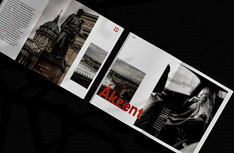 Архитектурный облик жилого комплекса вдохновлен образами немецкого и голландского кирпичного экспрессионизма. Этот концепт находит свое отражение как в названии AKZENT – с ударением на первую букву, подчеркивая немецкое произношение, так и в буклете. Немецкие заголовки, продолжающие идею названия, игра со шрифтами, создающая визуальные контрасты, погружает в атмосферу комфортной жизни в европейском районе. Для людей, которые не приемлют компромиссов, когда дело касается комфорта.