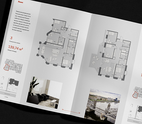 Особое внимание дизайнеры уделили визуальной составляющей: ретушь фото в оттенках, перекликающихся с оттенками кирпича, детали архитектурных решений, внутренний дизайн и планировки визуализируют ценности и образ жизни целевой аудитории. Буклет AKZENT – самая чистая форма донесения информации о новом жилом комплексе.