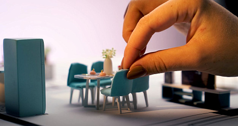 В роликах женские руки расставляют миниатюрную мебель на распечатанной планировке. И закадровый голос рассказывает о мечтах, которые можно воплотить благодаря квартирам в NOW.