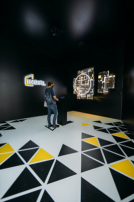 Разработка и реализация мультимедийной интерактивной инсталляции на основе искусственного интеллекта, которая ведет коммуникацию с гостем. Цифровой образ виртуального помощника InGirl – это генеративная графика реального времени, облако точек, формирующее женское лицо на массиве светодиодных экранов.
