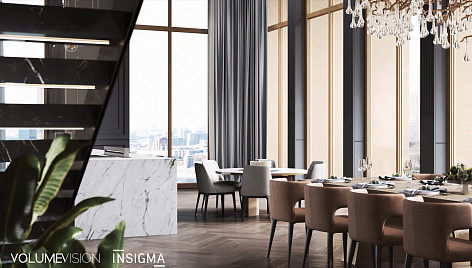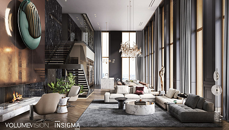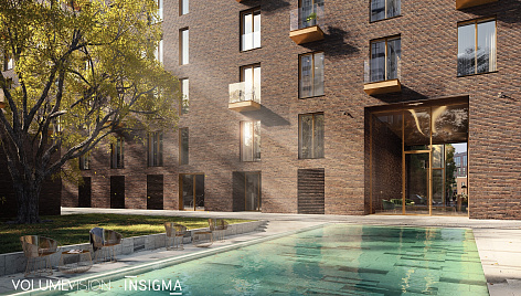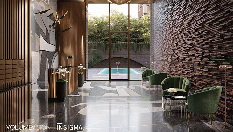 Реалистичная художественная анимация передает уникальность воссоздаваемых исторических фасадов, их гармоничное сочетание с современным кирпичом ручной формовки и бронзовыми панелями, великолепие дизайнерского лобби и тишину внутреннего двора с прудом, а также сдержанную роскошь интерьеров будущих квартир.