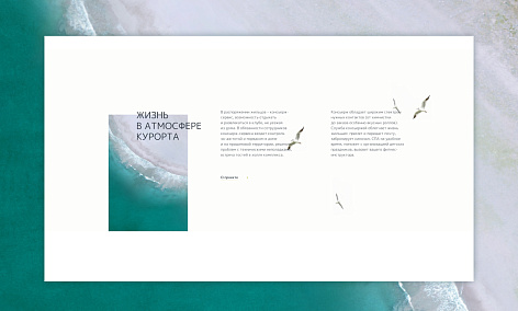 Мы старались не просто показать всю красоту и уникальность клубного дома — нам хотелось, чтобы посетитель сайта буквально чувствовал свежий морской воздух и слышал крики пролетающих мимо чаек. Чтобы сайт вызывал такие же чувства, какие вызывает открытка с моря, полученная осенью или найденная в дальнем углу зимой — наполнял теплом и вызывал желание скорее вернуться в волшебное место с картинки.