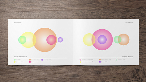 Логотип и элементы фирменного стиля создаются из композиции цветных сфер, накладывающихся друг на друга. Они отражают пространства ЖК (уютные квартиры, зелёные дворы, детские площадки) и кластеры, которые объединяют жителей по интересам (спорт, экология, образование).