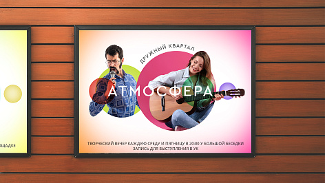 Нейм «Атмосфера» и дескриптор «Дружный квартал» подчеркивают тему единения и добрососедства. Теперь жители ЖК могут с гордостью говорить «У нас своя «Атмосфера». А мы поможем в этом с помощью наших визуальных решений.