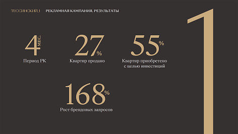 Цифра «1» в названии дома дополнительно подчеркивает нашу лидерскую позицию. При разработке коммуникации мы учитывали историческое наследие дома, а также то, что дом еще не построен и обладает дополнительной инвестиционной ценностью для первых покупателей квартир и пентхаусов.