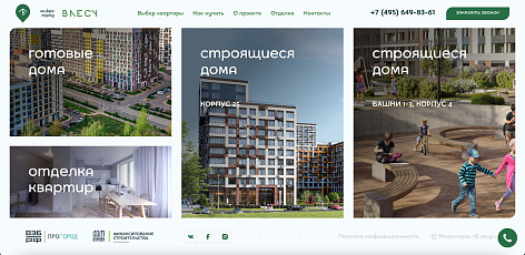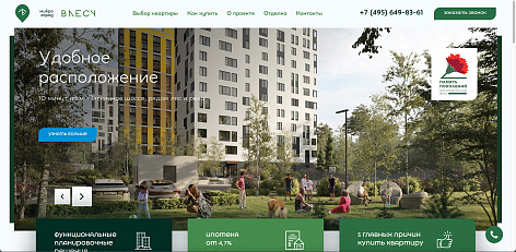 Быстрая загрузка, четко структурированный контент с продуманными заголовками и небольшими, но емкими текстами и яркими картинками, аккуратная анимация, адаптивный дизайн для разного формата устройств – все это позволяет пользователям за короткий срок получить максимум информации и достигнуть поставленных целей от посещения сайта: узнать о жилом комплексе и его преимуществах, посмотреть ход строительства, подобрать жилье и удобный формат покупки.