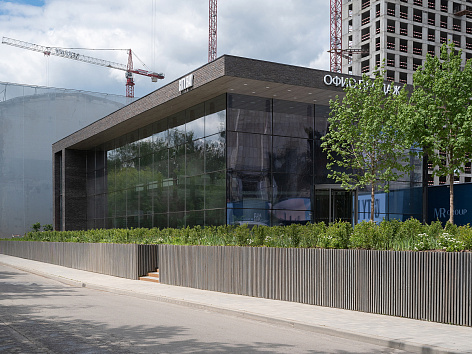 Компания Уникальные здания стало генеральным проектировщиком и генеральным подрядчиком по зданию офиса продаж, а также изготовителем мебели и элементов интерьера данного здания.
