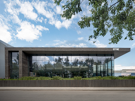 Здание было решено строить на фундаменте бывшего сталелитейного цеха – его кровлю и стены аккуратно разобрали, а фундаментную плиту толщиной метр – оставили, она отделила территорию офиса продаж от дороги.