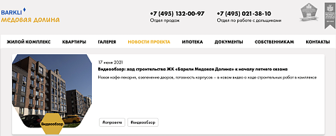 Видео с официального YouTube-канала публиковалось на сайте жилого комплекса и застройщика, в Facebook, Вконтакте, Instagram. Также дольщики самостоятельно распространяли ролики в открытых и закрытых чатах, обсуждали готовность проекта.