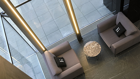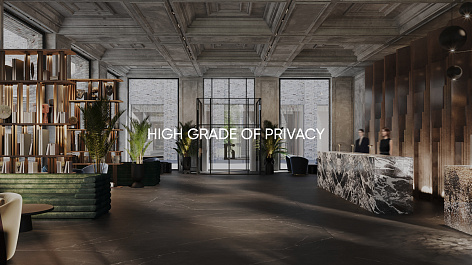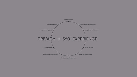 Проект концентрируется на приватности и комплексности сервиса, закрывающего потребности премиальной публики на все 360 градусов. Высокий уровень закрытости и безопасности достигается за счет сохранения комфортной дистанции с внешним миром. Лигатура, использованная для логотипа сочетает в себе сразу два значения: “высокий” от англ. “high”, и “спрятаться” от англ. “hide”. Оба этих смысла гармонично транслируют потребителю, что он может найти свое укромное место в одной из высоток объекта: WestDale, ParkLane и RiverSide. Комплексность обеспечивается за счет “сервиса 360°” — то есть Hide позволяет закрыть любую потребность своих резидентов в пределах территории ЖК. Видовой ресторан на крыше, современные лобби, комфортные коворкинги, удобные спортивные площадки и беговая трасса — все это и не только формирует систему “вертикального города”, позволяя жителям чувствовать себя максимально безопасно, расслабиться и быть вне видимости посторонних глаз. Внутри территории концепция уединенности и приватности также продолжается в планировках общественных пространств: детские площадки, места для йоги и воркаута, террасы для пикника отделены друг от друга изгородями из живых растений.