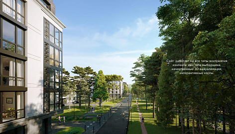 Сайт выполняет множество функций и работает на все типы восприятия контента: два типа выборщика, качественные 3D визуализации, интерактивные карты.