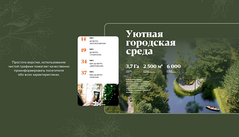 Простота верстки, использование чистой графики помогает качественно проинформировать посетителя обо всех характеристиках и преимуществах проекта.