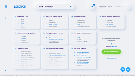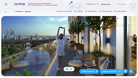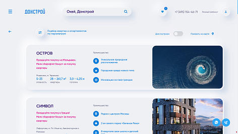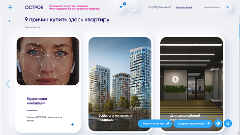 – невероятно продуманные карточки объектов, которые напоминают целый микро-сайт с возможностью не только постепенно получать информацию по объекту, но и выбрать, купить он-лайн квартиру,