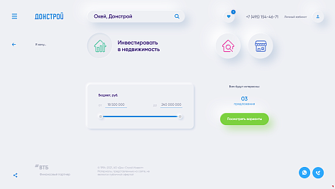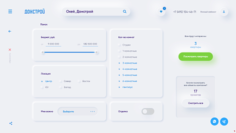 Основное преимущество неоморфизма – «свежесть». Он привносит ощущение новизны в интерфейс и выделяет его. Корпоративный сайт Донстрой – именно такой: он свежий, невероятно простой и быстрый. И главное, – умный!