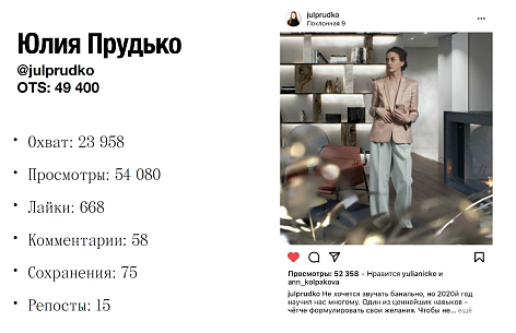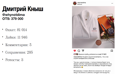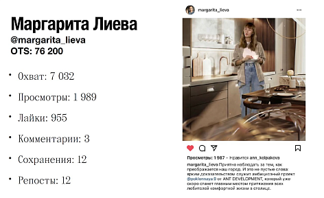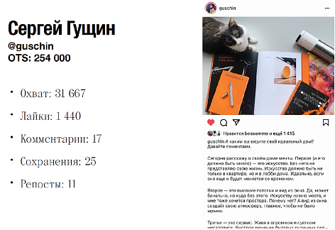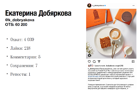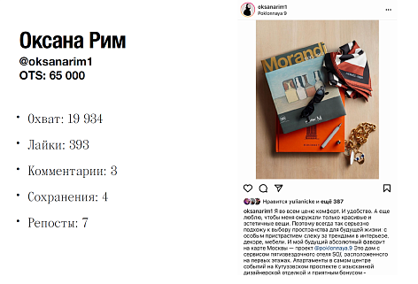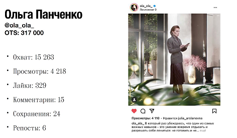 инфлюенсеры в формате раскладки flatlay нативно показали айдетику дома «Поклонная, 9» (например, брелок для ключей или ежедневник), органично интегрируя её в фотографии. Тем самым герои ненавязчиво обратили внимание на свою повседневную жизнь, интересы, хобби, работу, увлечения и покупки, связанные с высоким уровнем комфорта.