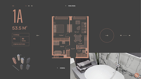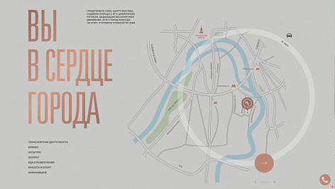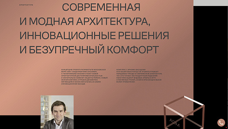 Вернемся к сайту. Концепция и подача – ультра-современный лендинг, который постепенно и интерактивно раскрывает проект покупателю: от архитектуры, которая дарит амбициозные виды на столицу, до выбора квартир с отделкой, которые подтверждают индивидуальность.