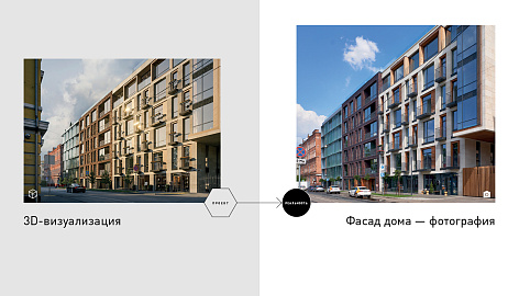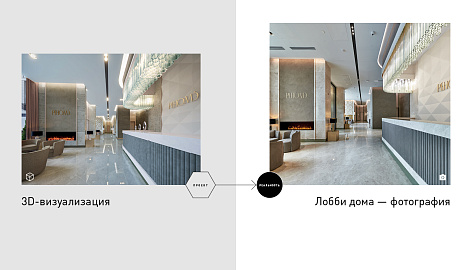 Проект и реальность. Задумка и воплощение. Обещание и исполнение. Визуализации, использованные в рекламе жилых комплексов, дополнены фотографиями результата.