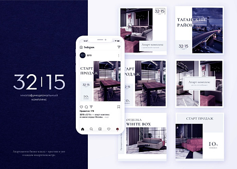 Центральной стала концепция интеллектуальных игр. Месседж «жизнь как игра» близок состоятельным покупателям – основной целевой аудитории комплекса. Название МФК «3215» не только отражает адрес дома (Нижегородская ул., д. 32, стр. 15), но и имеет скрытое символичное значение. 32 и 15 - числа, которые часто фигурируют в интеллектуальных играх. Так, на шахматной доске в начале партии всегда стоят 32 фигуры, для игры в преферанс требуется 32 карты, а в бильярде 15 шаров в начальной позиции складывают в виде треугольника.