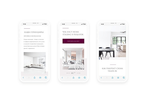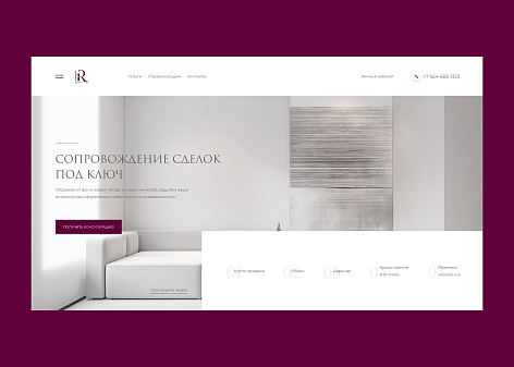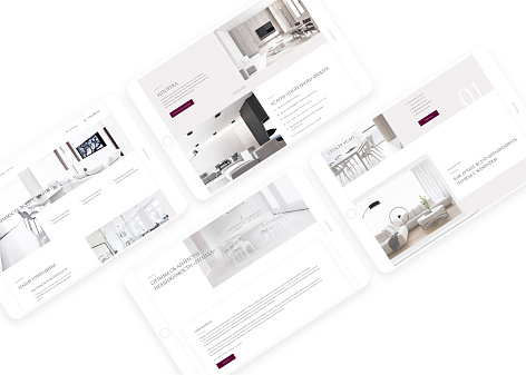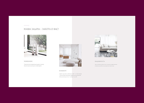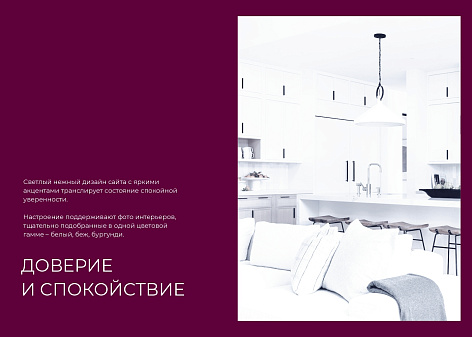Дизайн сайта выдержан в светлых тонах с яркими акцентами оттенка бургунди. Он транслирует состояние спокойной уверенности.