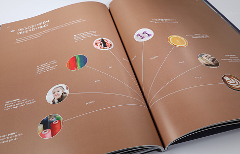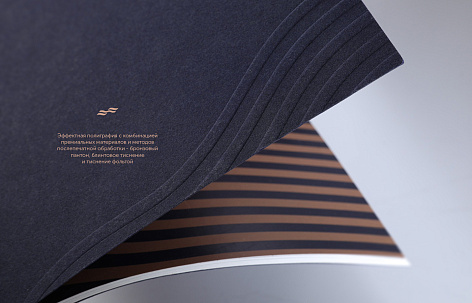 Полиграфическое исполнение подчеркивает уровень проекта, будучи выполненным с использованием тактильных дизайнерских бумаг тиснения и печать бронзой.